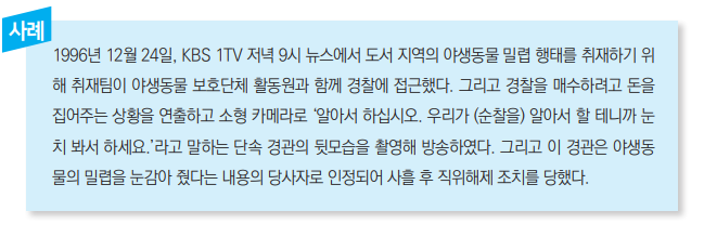 ② 취재원의 신변이 위태롭거나 부당하게 불이익을 받을 위험이 있는 경우에는 그에 대한 보호를 우선적으로 고려해야 한다. 그러나 취재원이 비윤리적인 행위, 또는 불법 행위의 당사자인 경우에는 함부로 취재원 보호를 약속해서는 안 된다.