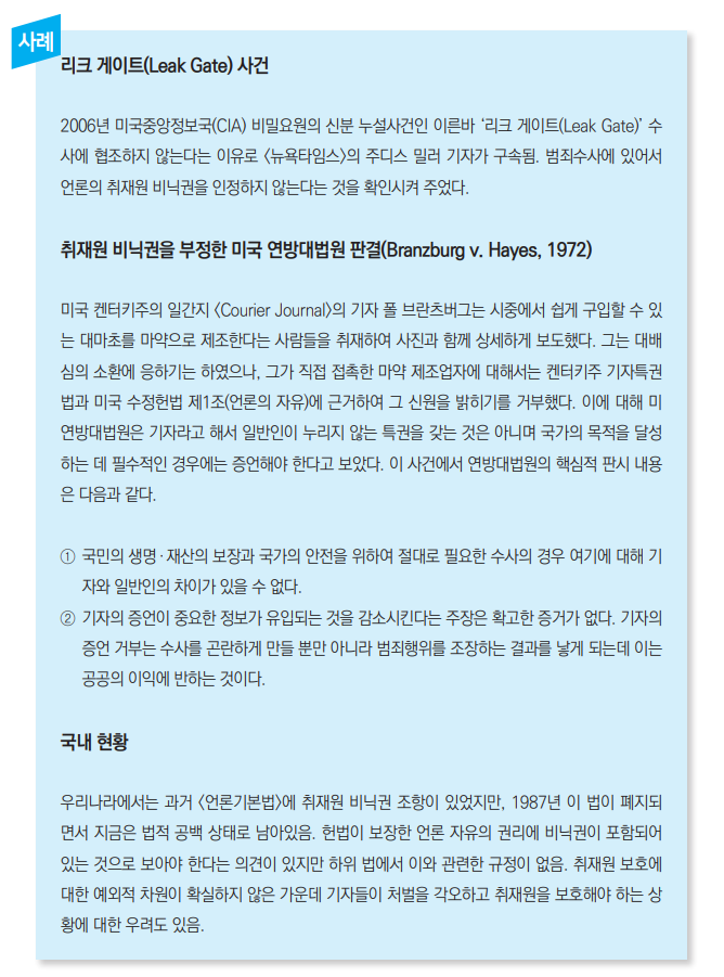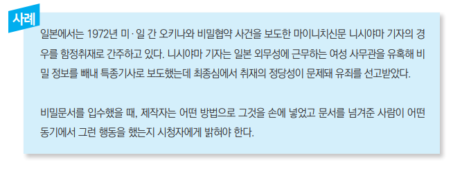 ④ 국가 안보 등 중대한 공익과 관련된 사안인 경우 실정법의 요구가 있으면 취재원의 신상을 공개할 수 있다.